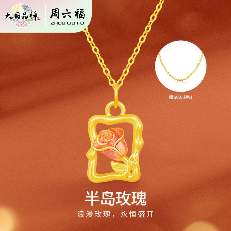 ALLOVE 18K金珐琅钻石挂坠 (送银链)GHD00595