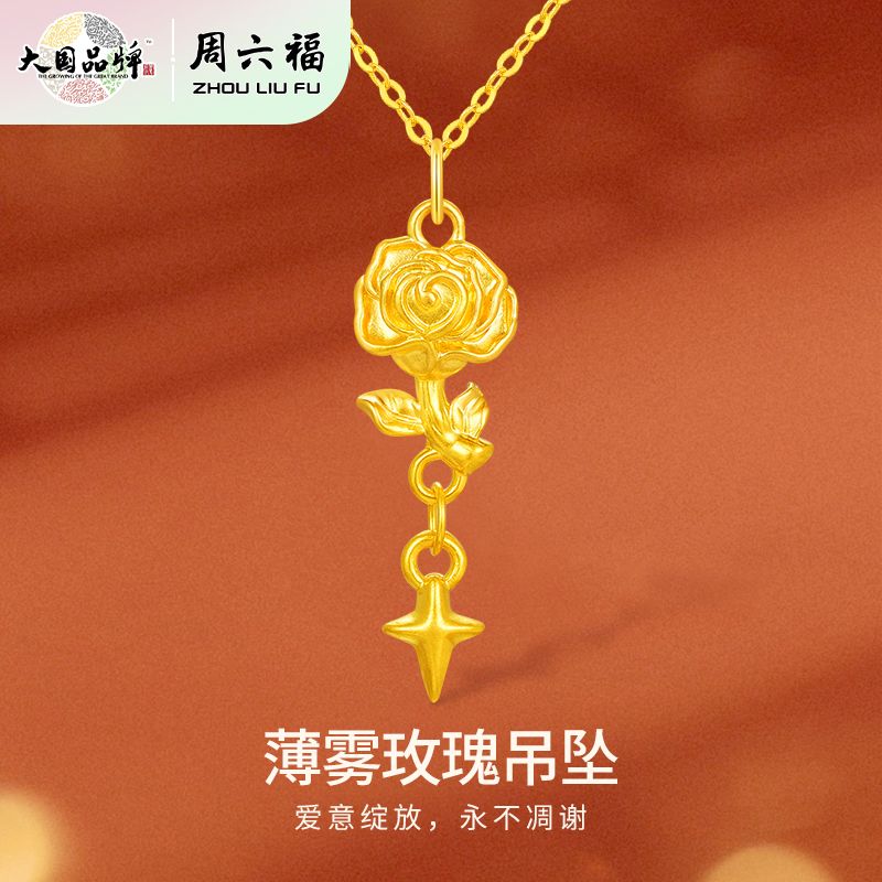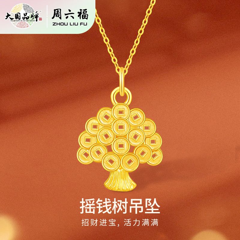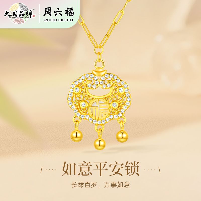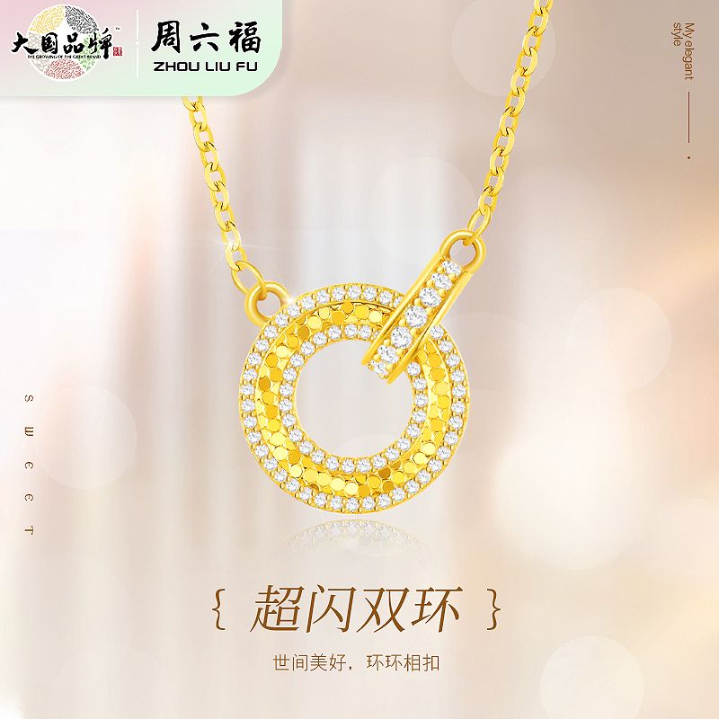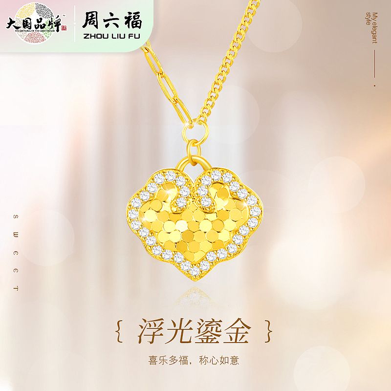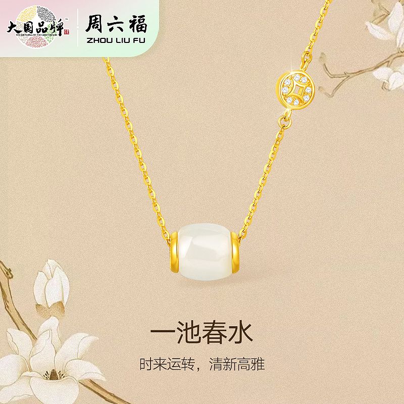 香港周六福黄金钻石首饰破茧成蝶白贝项链