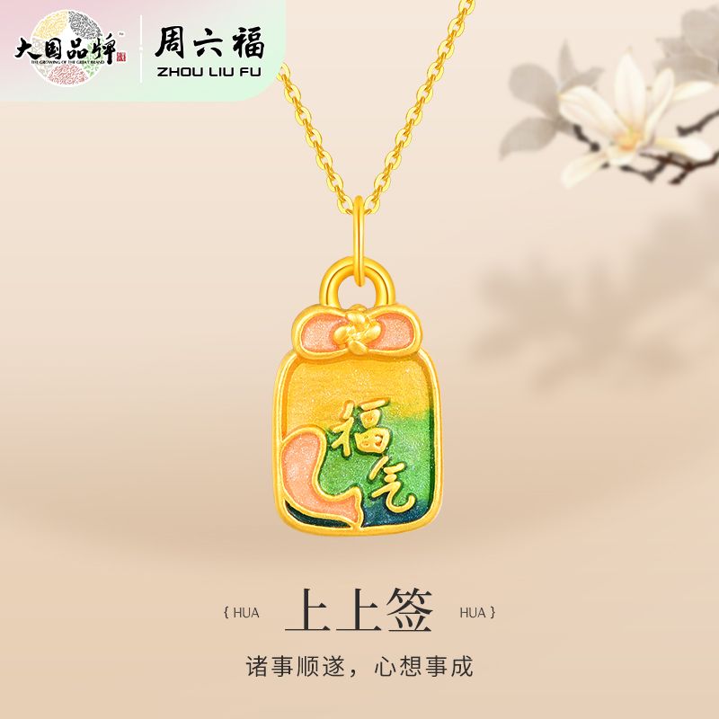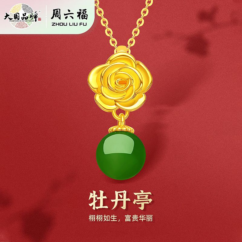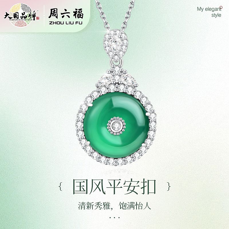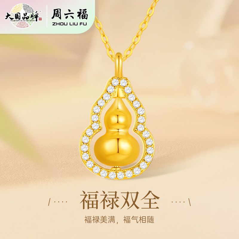 香港周六福黄金钻石首饰巴西高冰玉髓福禄葫芦吊坠(附赠汉白玉毛衣链)
