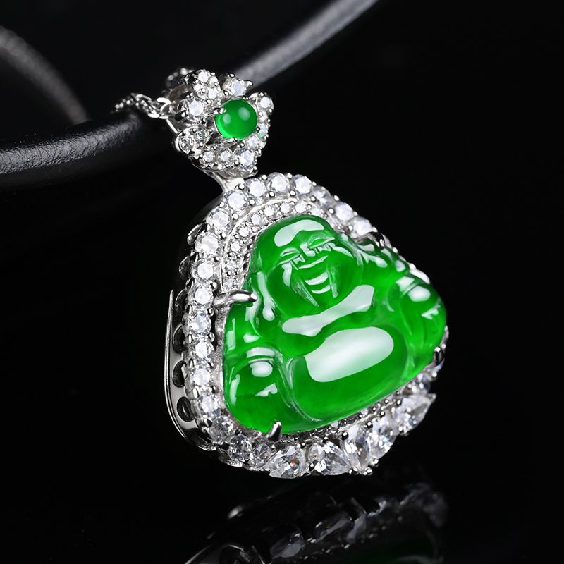 紫慕璃 复古国潮 阳绿笑佛 冰种 翡翠吊坠 女款