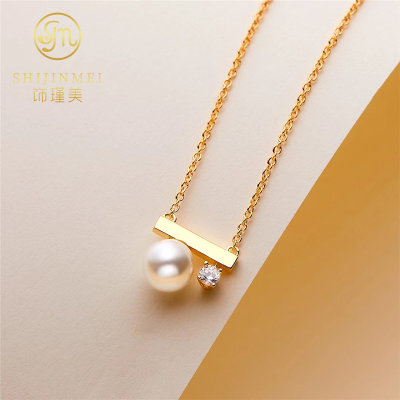 饰瑾美(SHIJINMEI)平衡木S925银淡水珍珠项链 金色