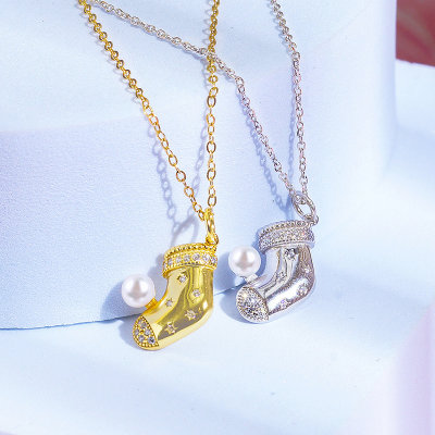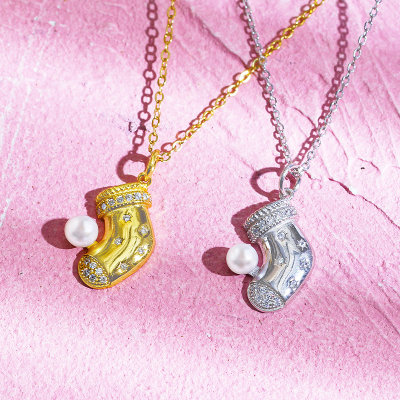 饰瑾美(SHIJINMEI)圣诞袜淡水珍珠项链 银色