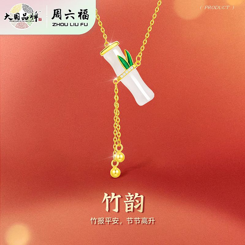 周六福S925银竹韵玉髓链坠