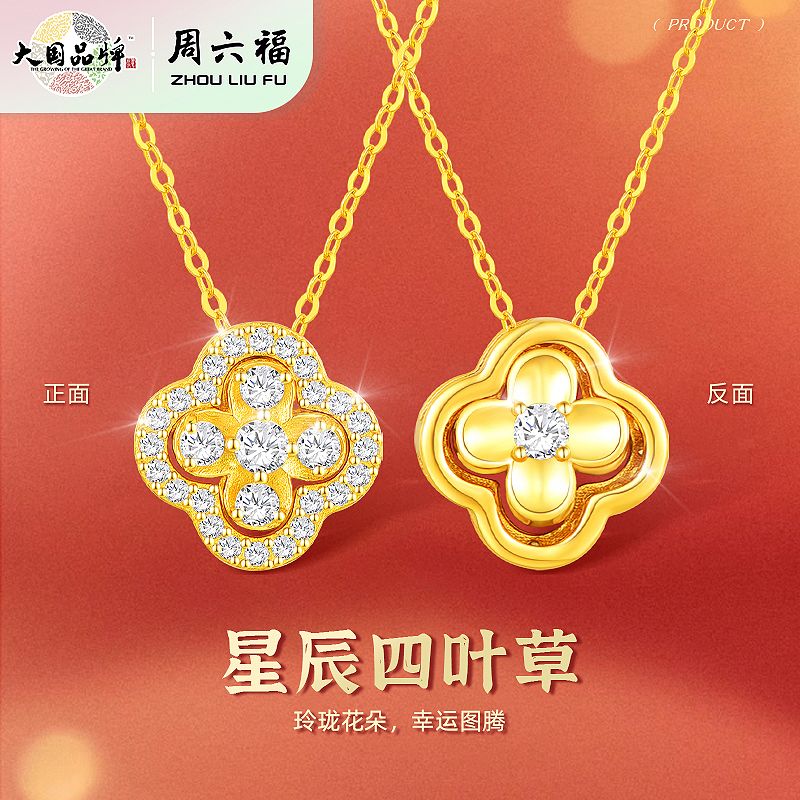 周六福S925银星辰四叶草项链