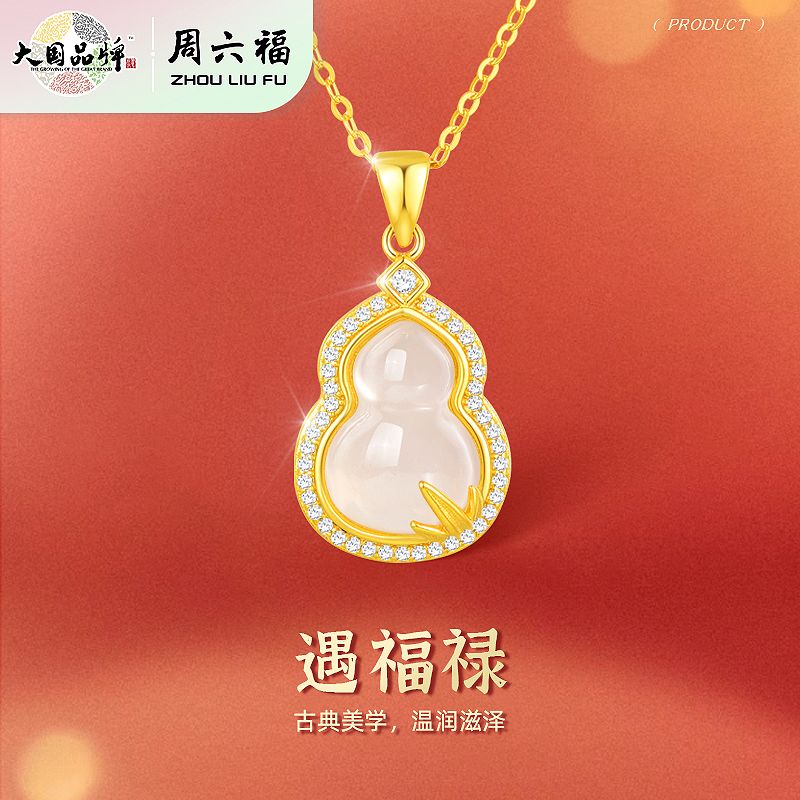 香港周六福黄金钻石首饰巴西高冰玉髓福禄葫芦吊坠(附赠汉白玉毛衣链)