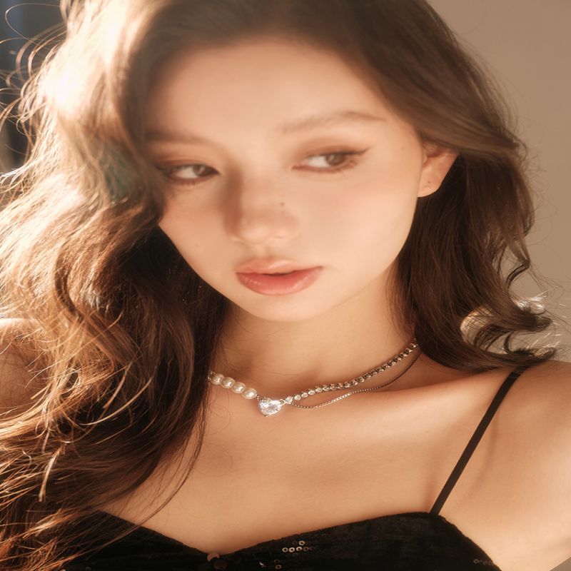 abyb珍珠项链锆石轻奢小众设计高级感来自星星的你拼接颈链锁骨链