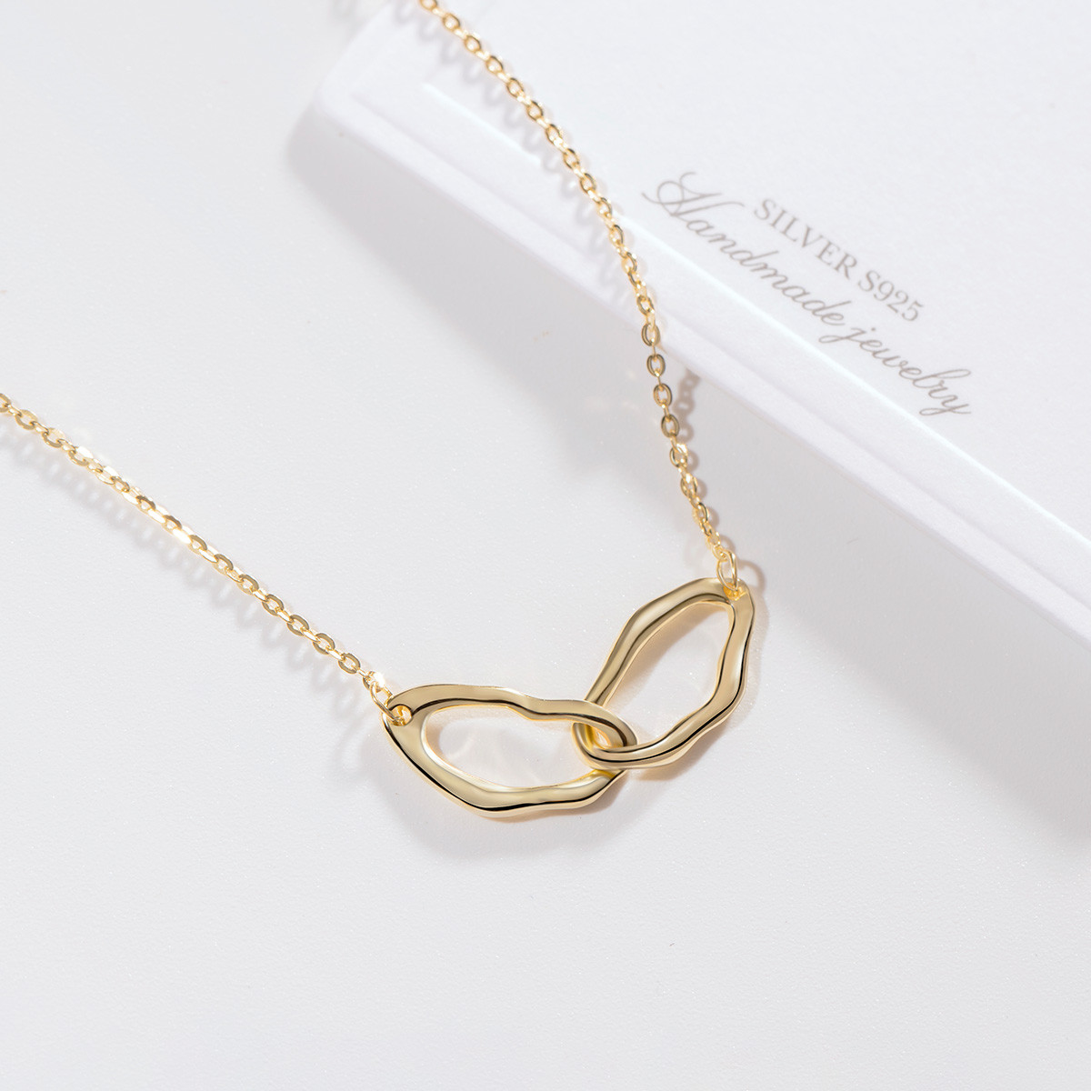 【环环相扣】925纯银个性锁骨链唯美线条几何项链 650817