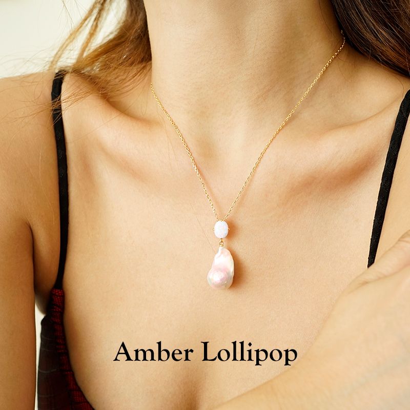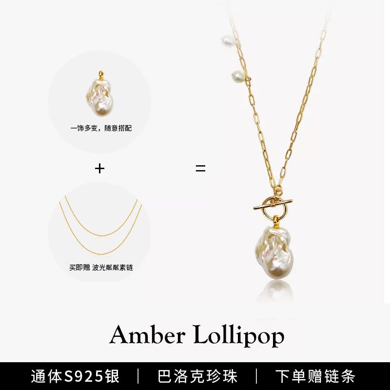 AmberLollipop天然巴洛克珍珠项链女欧泊吊坠锁骨链小众高级感220617849