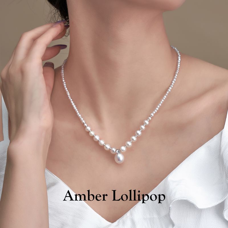 Amber Lollipop碎银子珍珠项链女纯银气质百搭锁骨链爆款项链ABL2305031041