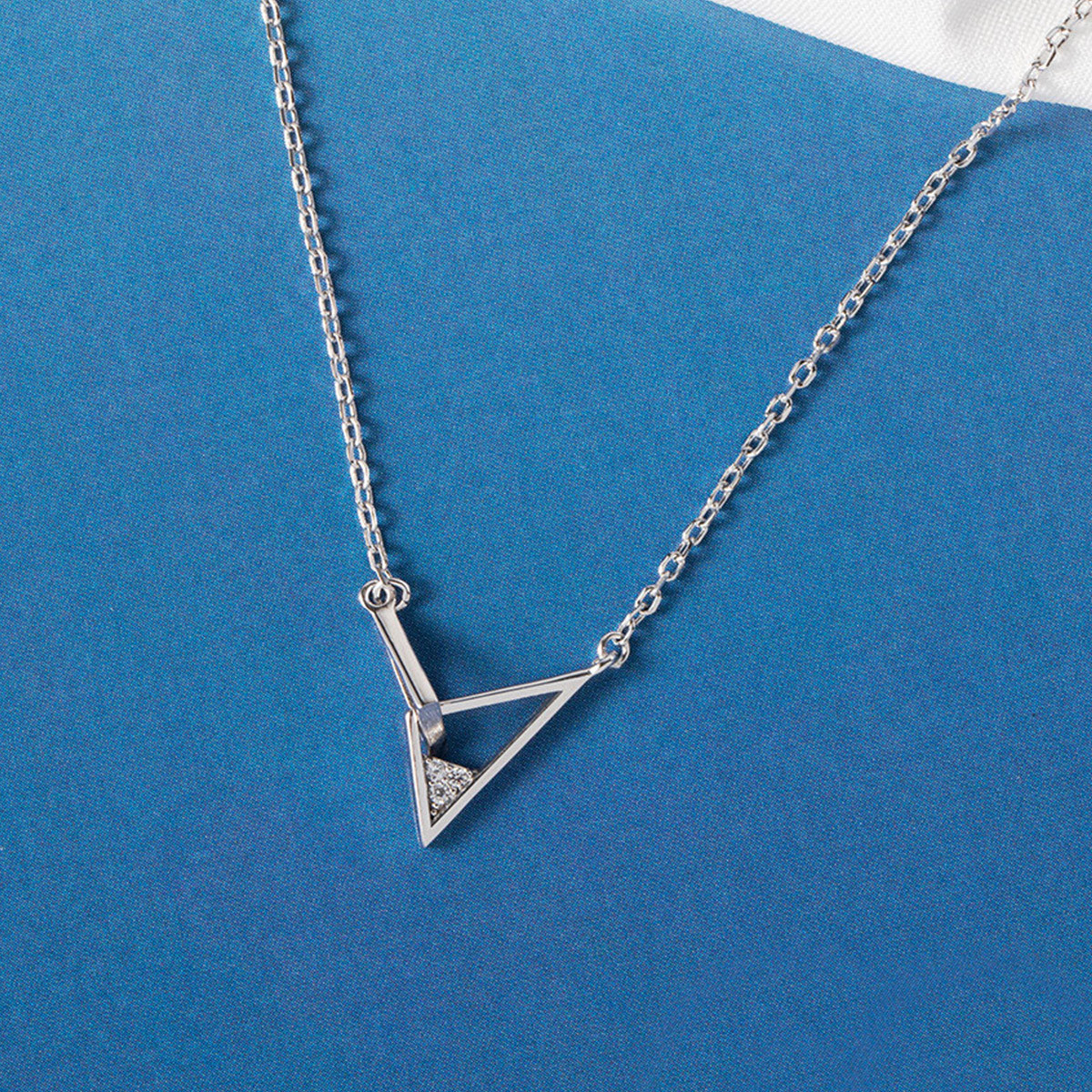 s925银简约三角相扣项链女韩版小清新几何闪亮锁骨链 436737