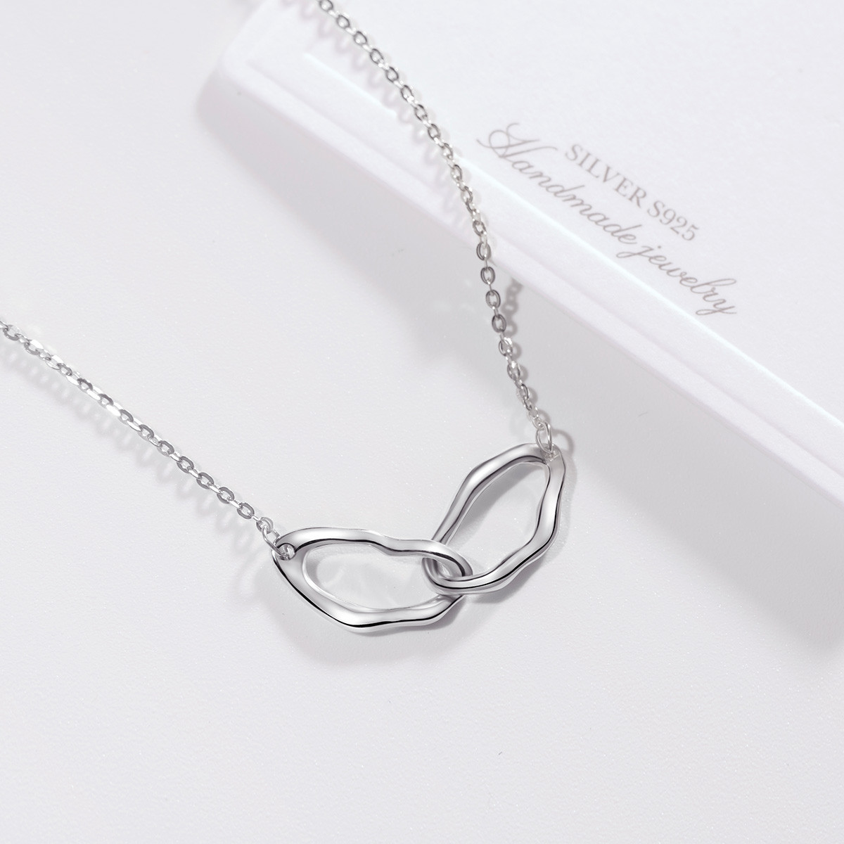 【环环相扣】925纯银个性锁骨链唯美线条几何项链 372225