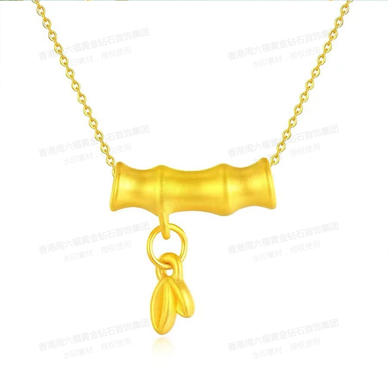 香港周六福5G黄金-足金竹节吊坠竹林清金国风新款黄金富贵竹【足金含约:0.1g 内镶3DAG模型】