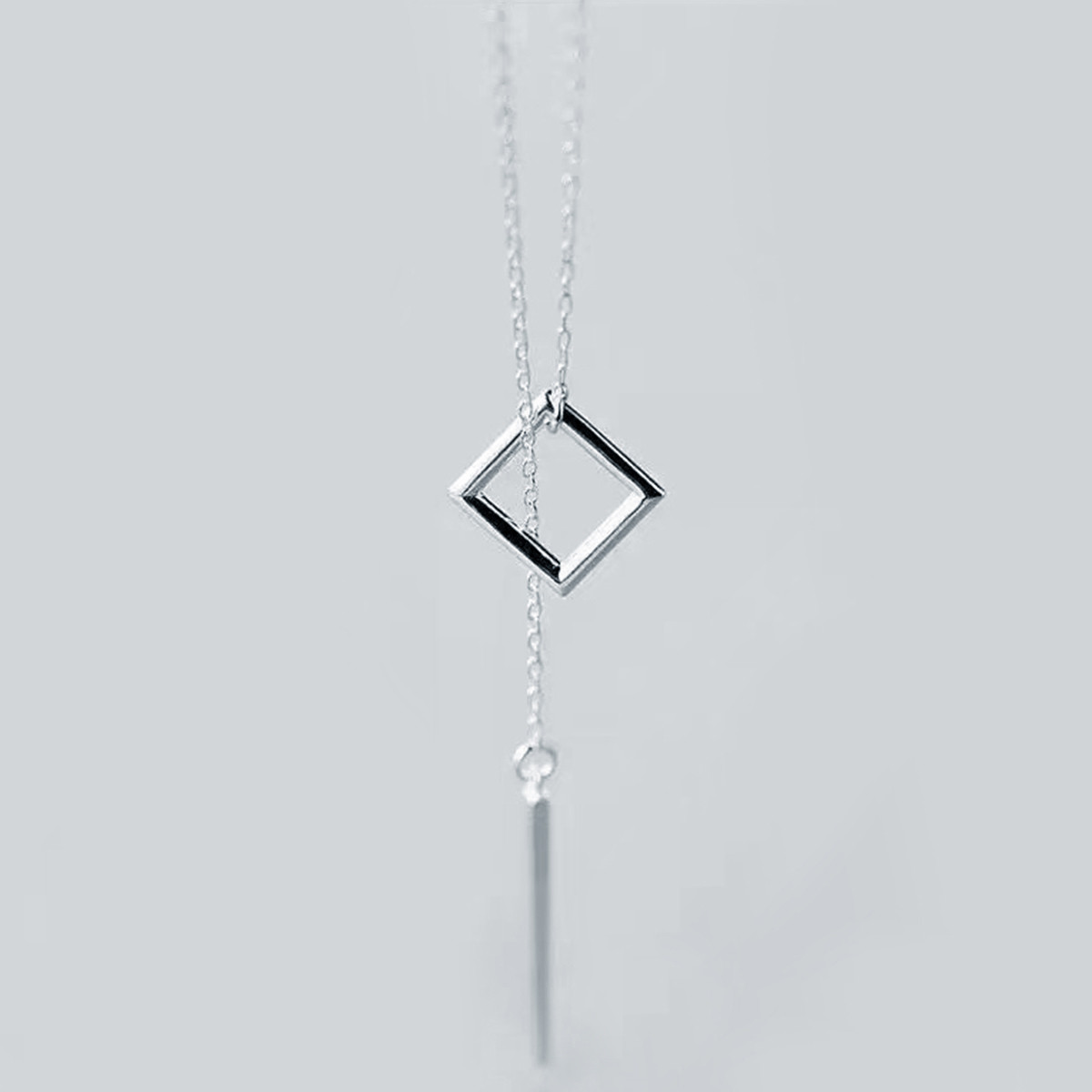 925纯银方形一字扣项链女冷淡风锁骨链 477313
