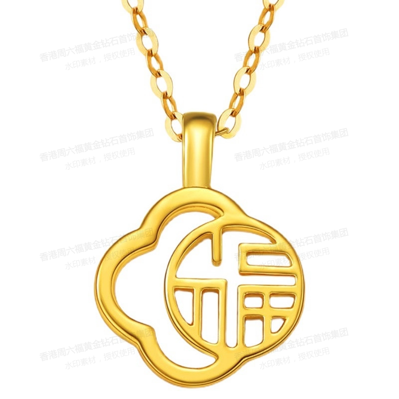 香港周六福5G黄金-足金幸福四叶草福牌吊坠【材质:足金含约:0.1g 内镶3DAG模型】