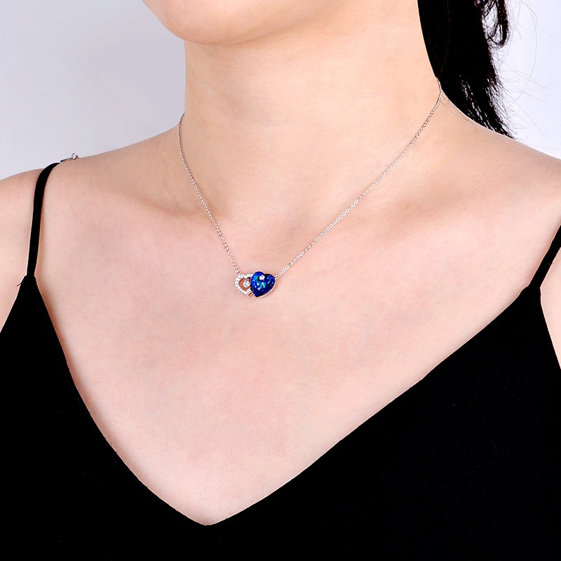 veecans爱心水晶项链女款925银简约气质吊坠情人节礼物高级感百搭