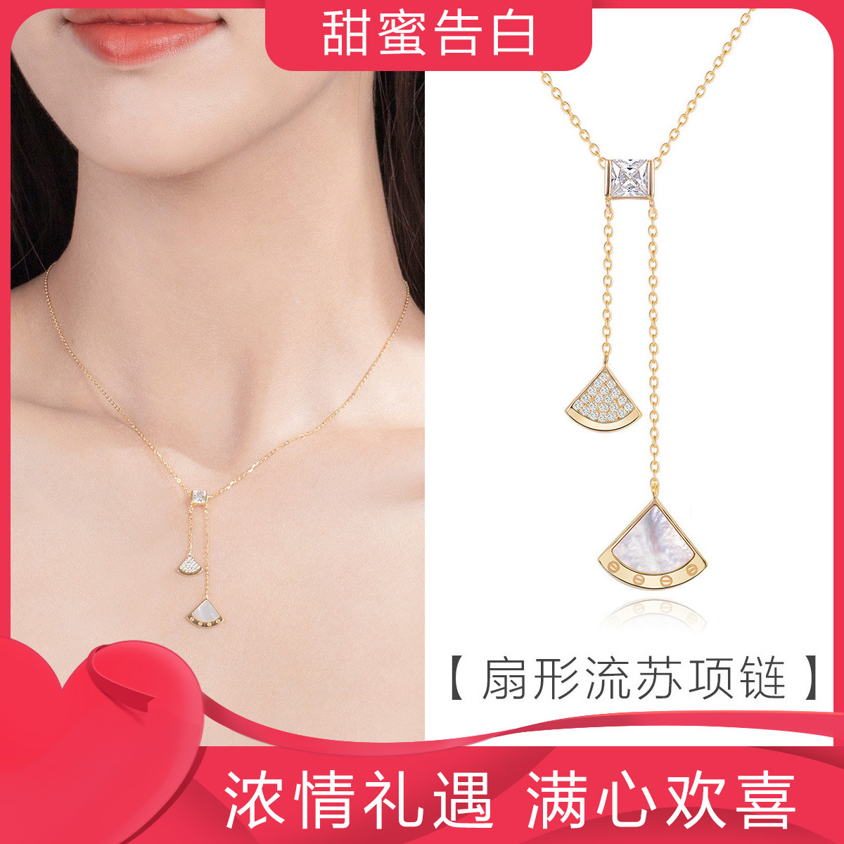 925银扇形银项链女贝壳轻奢锁骨链闺蜜礼物 620545