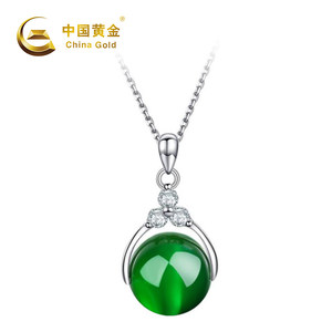 China Gold/中国黄金花朵绿玉髓路路通吊坠+S925银链AX10737