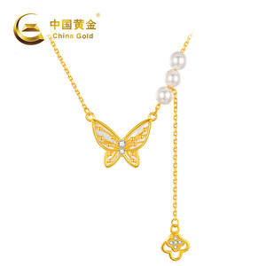 China Gold/中国黄金S925银蝴蝶白贝珍珠项链ZGHJ230421