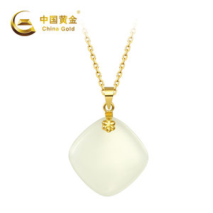 China Gold/中国黄金18K金镶和田玉小方块平安无事牌吊坠-送S925银链ZGHJ220590