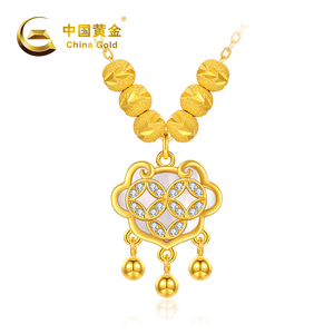 China Gold/中国黄金S925银镶贝母招米平安锁项链ZGHJ230060