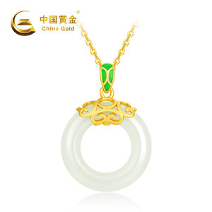 China Gold/中国黄金S925银镶和田玉事事如意平安扣吊坠ZGHJ211438