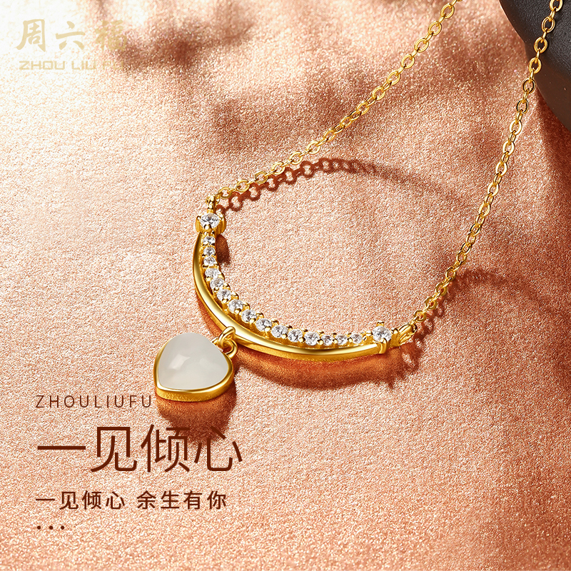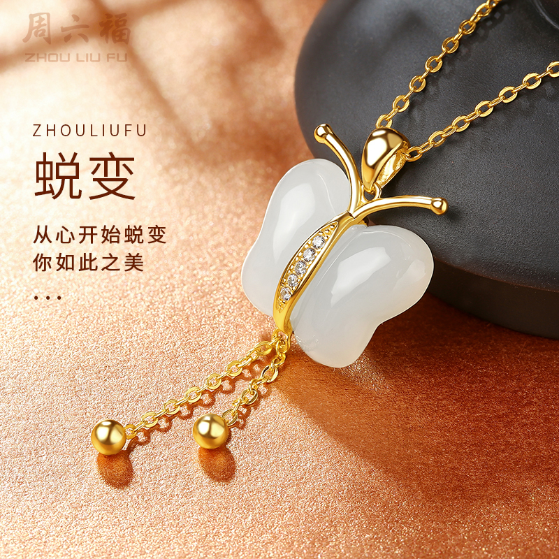 香港周六福黄金钻石首饰破茧成蝶白贝项链