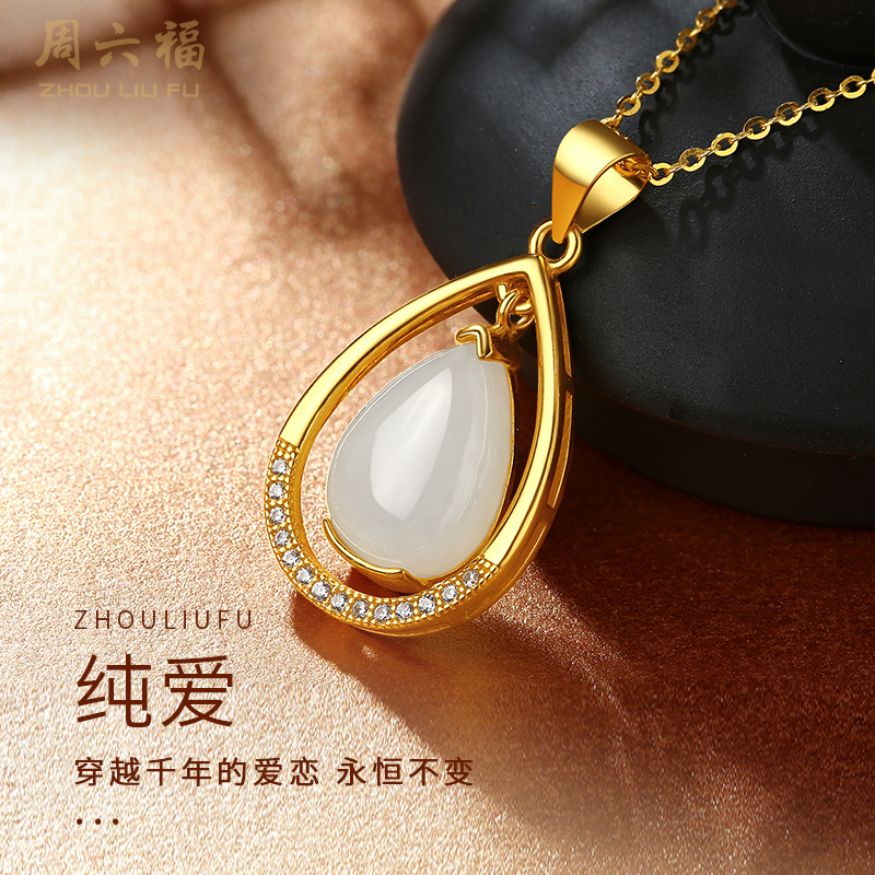 香港周六福黄金钻石首饰巴西高冰玉髓福禄葫芦吊坠(附赠汉白玉毛衣链)