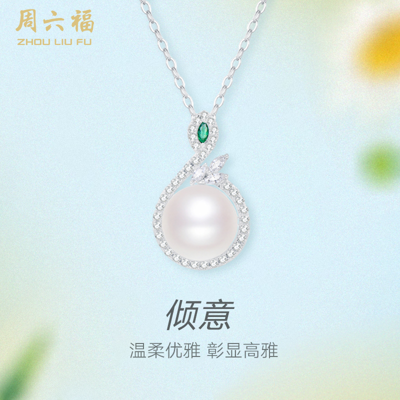 周六福S925银雪后气质珍珠项链ZLFX062047
