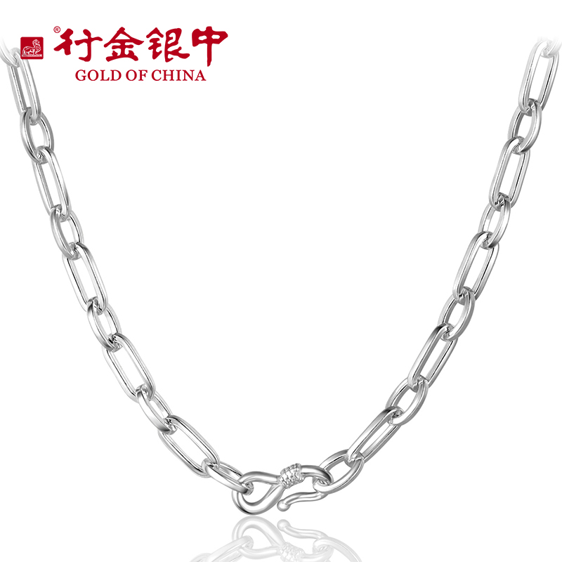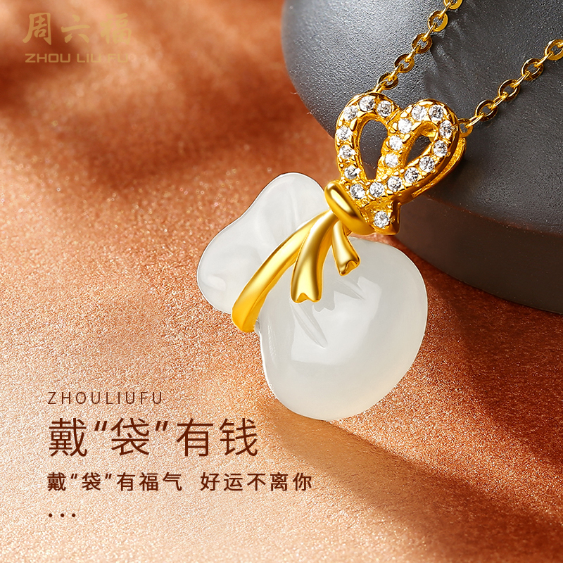 周六福S925银和田白玉戴袋有钱吊坠项链