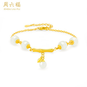 周六福S925银和田玉平安喜乐手链ZLFY07939