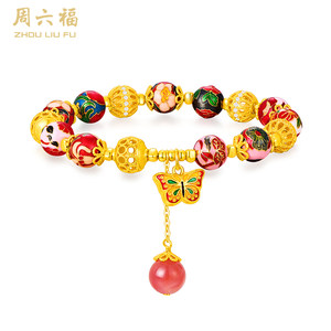 【京东配送】周六福足金一生一世转运金珠手绳ZLFA171409
