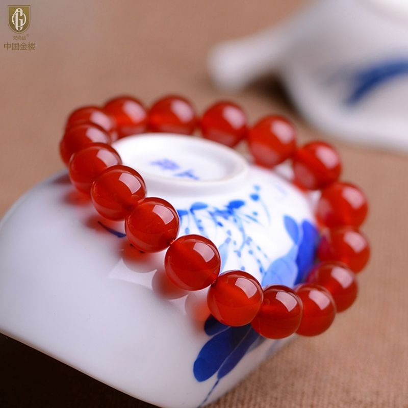 中国金楼梵尚品天然A级红玛瑙手链送礼好物HKZLF01002