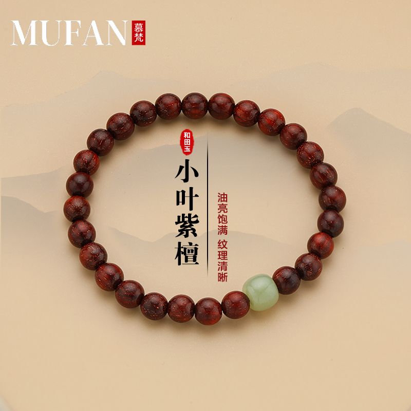 天然和田玉小叶紫檀简单百搭款单圈手链
