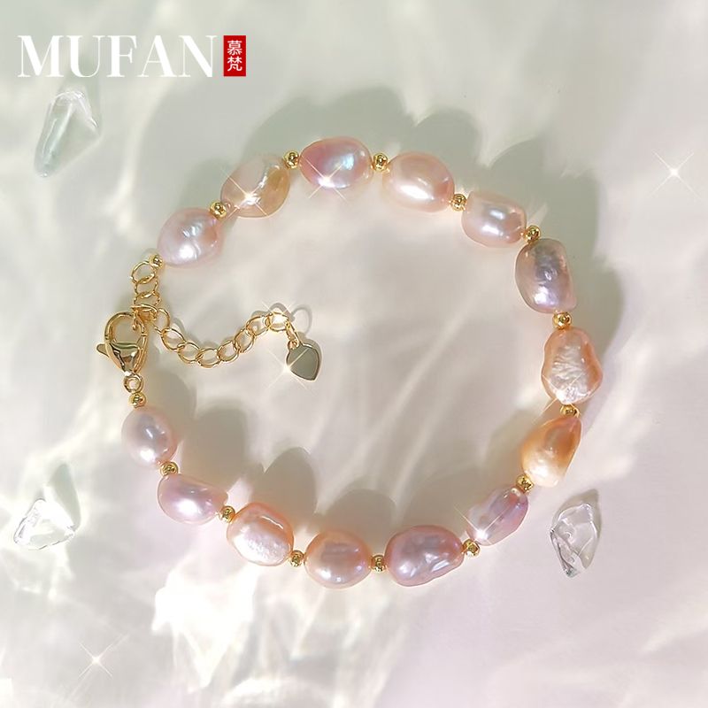 彤彤兔 轻奢淡水珍珠手链气质简约百搭小众巴洛克手饰个性时尚复古配饰品
