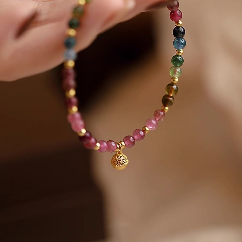 天然彩色碧玺铃铛款手链