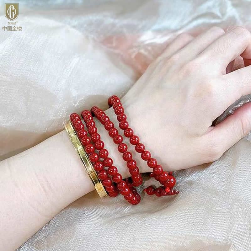 中国金楼梵尚品天然原矿石A级朱砂手链HKZLF01006送礼好物(买一赠一送汉白玉手串)