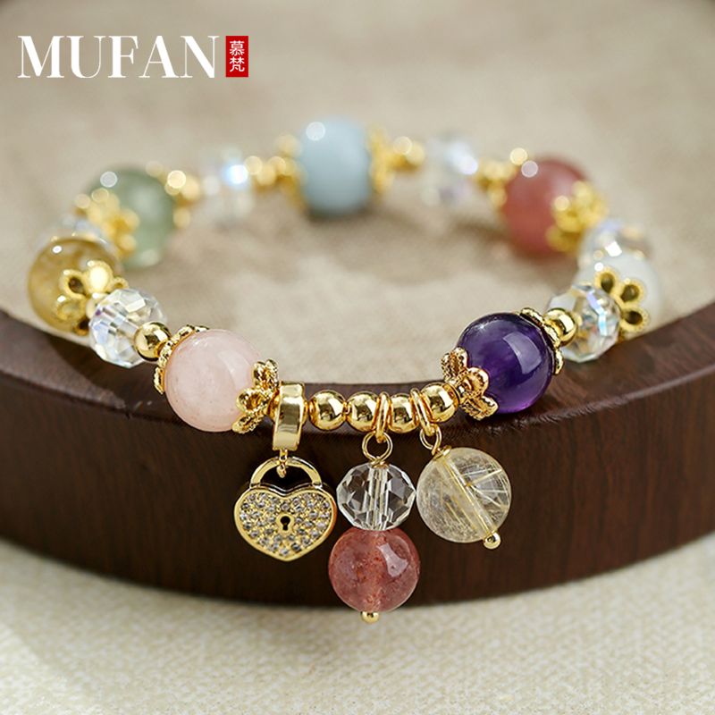 多宝水晶手链女金发晶红绿草莓晶海蓝宝紫晶手串爱心手饰