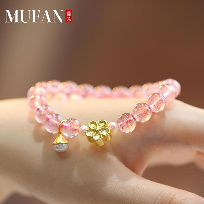 草莓晶桃花手链送闺蜜古风生日礼物