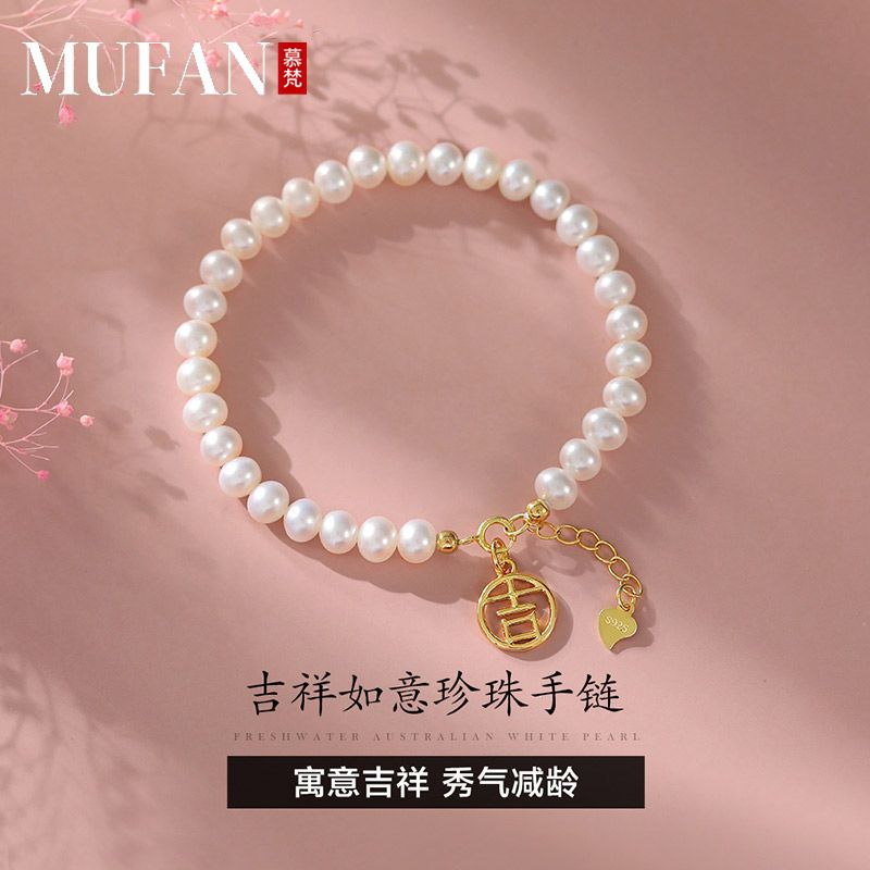 吉祥 5-6mm强光泽淡水珍珠手链 S925银扣【B064】
