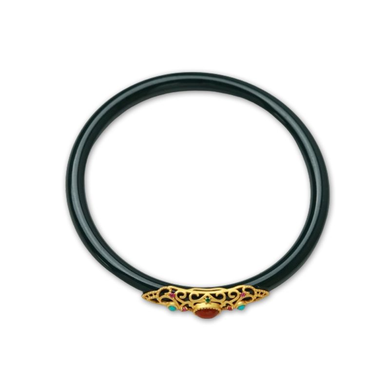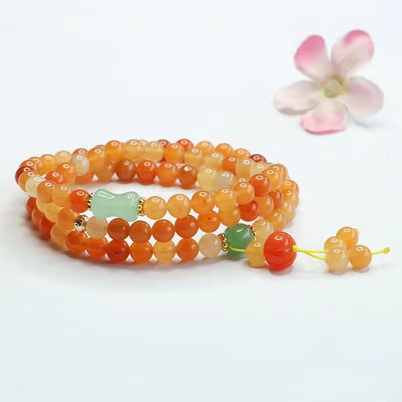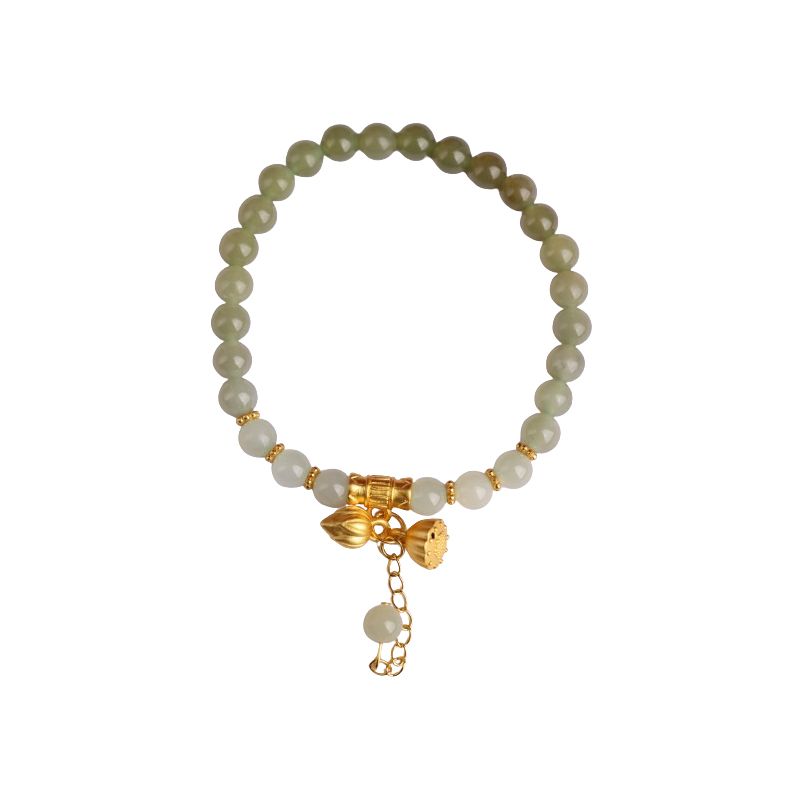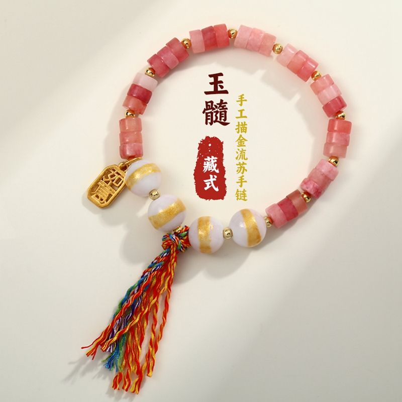馬传玉 金箔香灰藏式天然玉髓流苏手链描金手串 MCY102