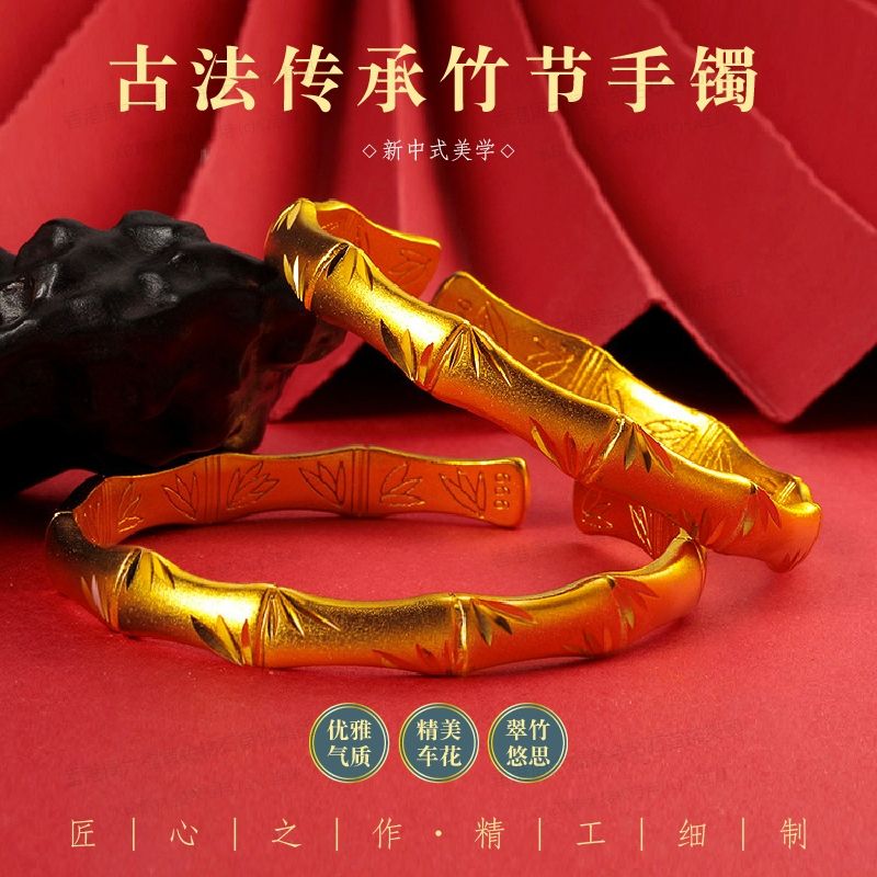 香港周六福黄金钻石首饰K金古法传承竹节手镯-132