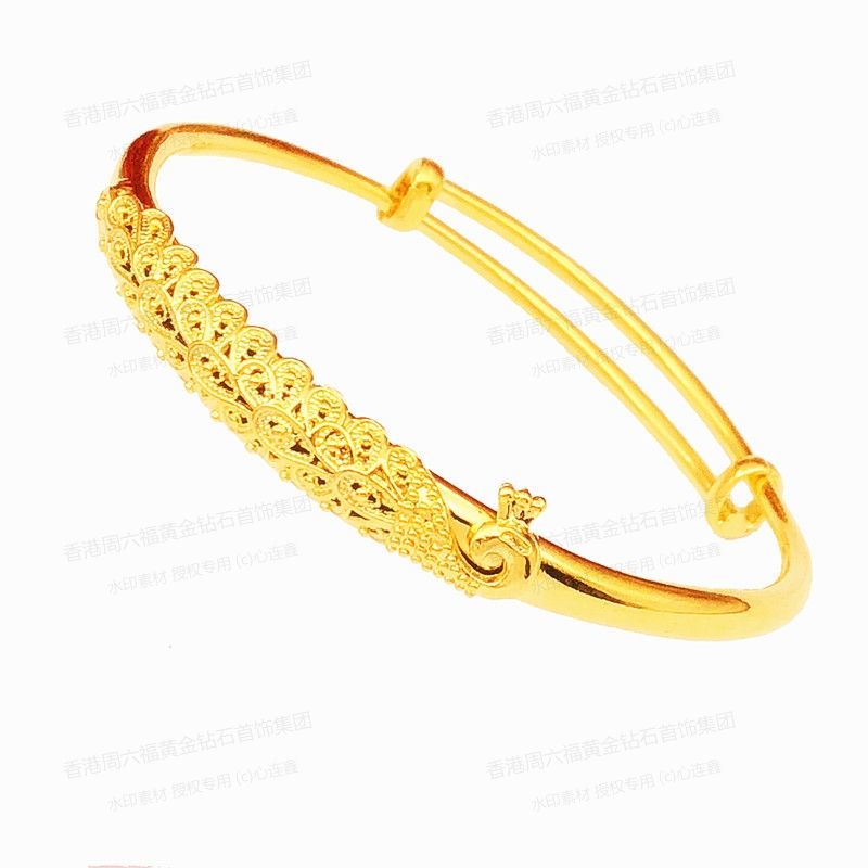 香港周六福黄金钻石首饰K金孔雀手镯-029