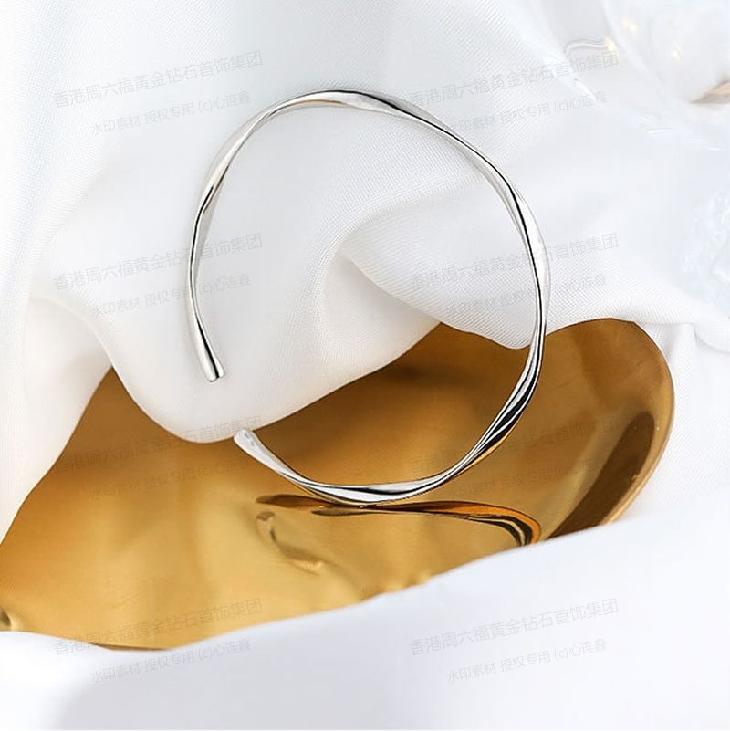 香港周六福黄金钻石首饰无限循环开口白金手镯