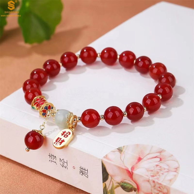龙年本命年朱砂紫金砂转运珠手链 6mm