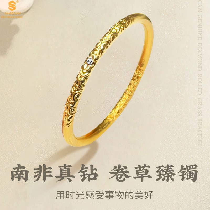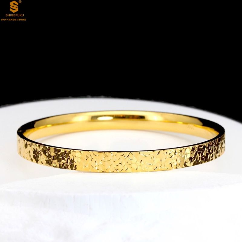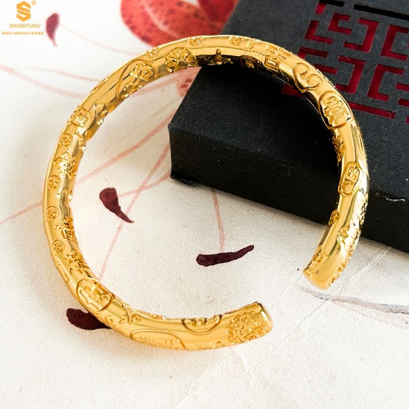 香港周六福黄金钻石首饰多宝吉言古法精雕开口K金手镯