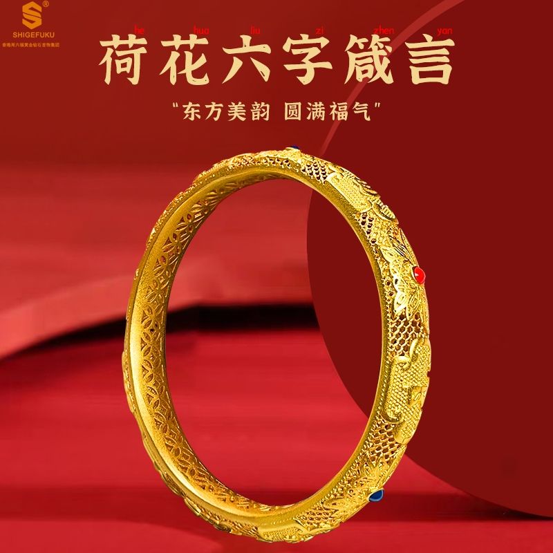 香港周六福黄金钻石首饰荷花六字箴言手镯