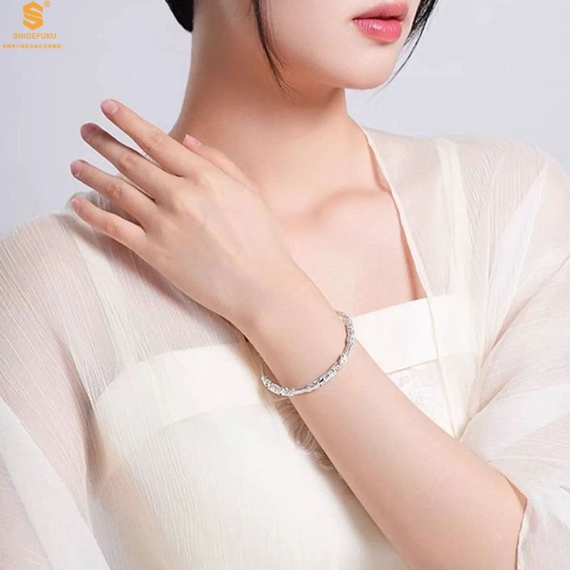 香港周六福黄金钻石首饰K银繁花似锦推拉马蹄扣手镯