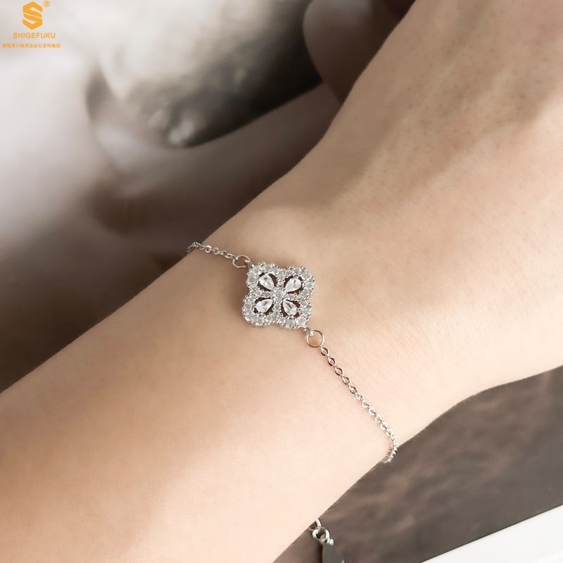 香港周六福黄金钻石首饰幸运满钻四叶草K铂金手链