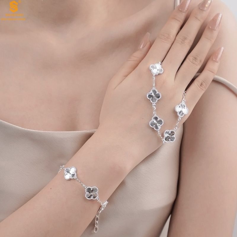 香港周六福黄金钻石首饰K银微雕五颗四叶草手链
