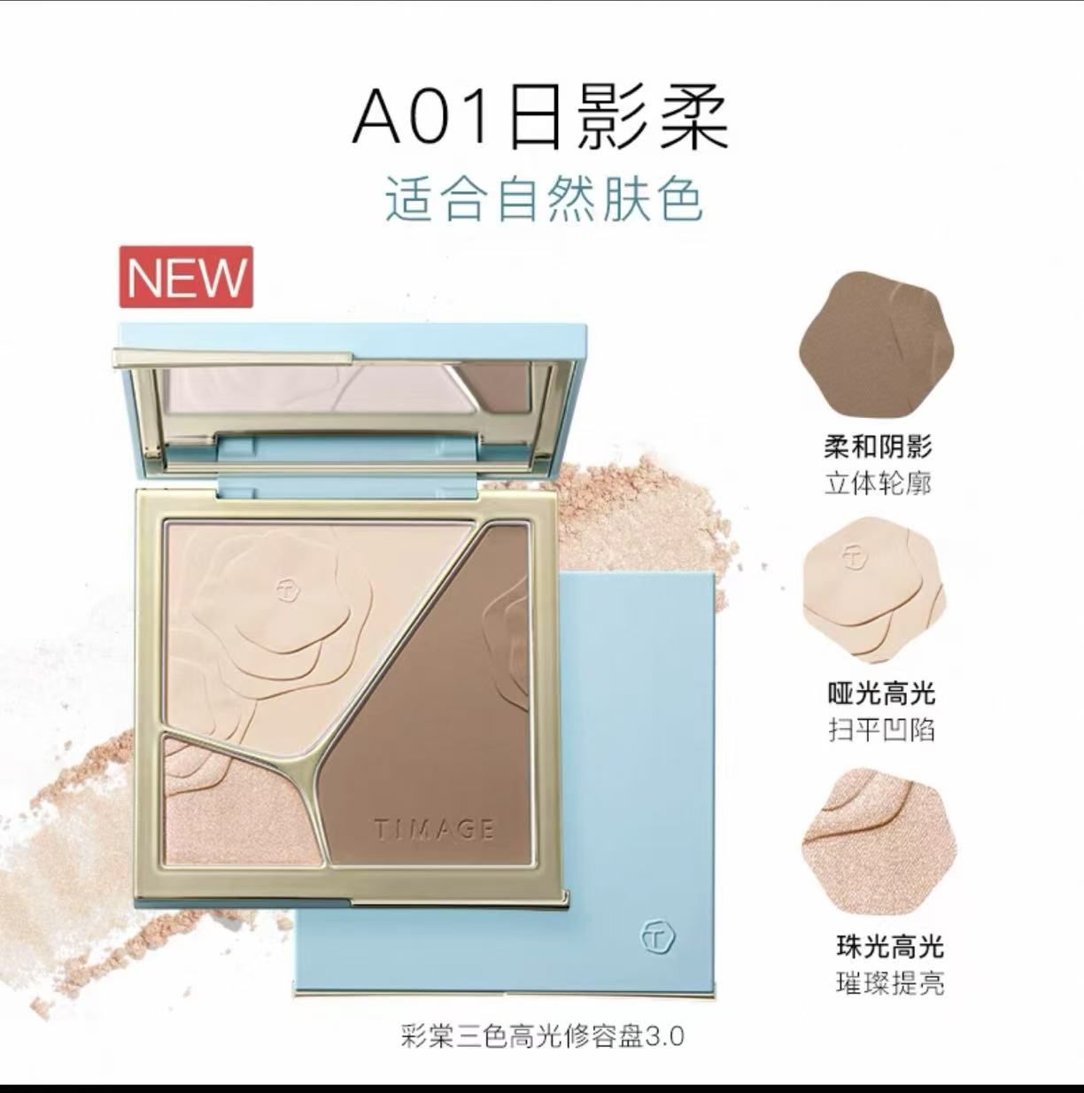 TIMAGE/彩棠高光修容一体盘三色哑光珠光提亮面部A01